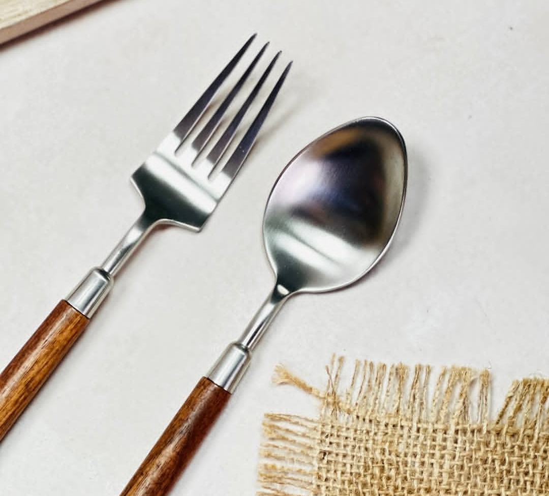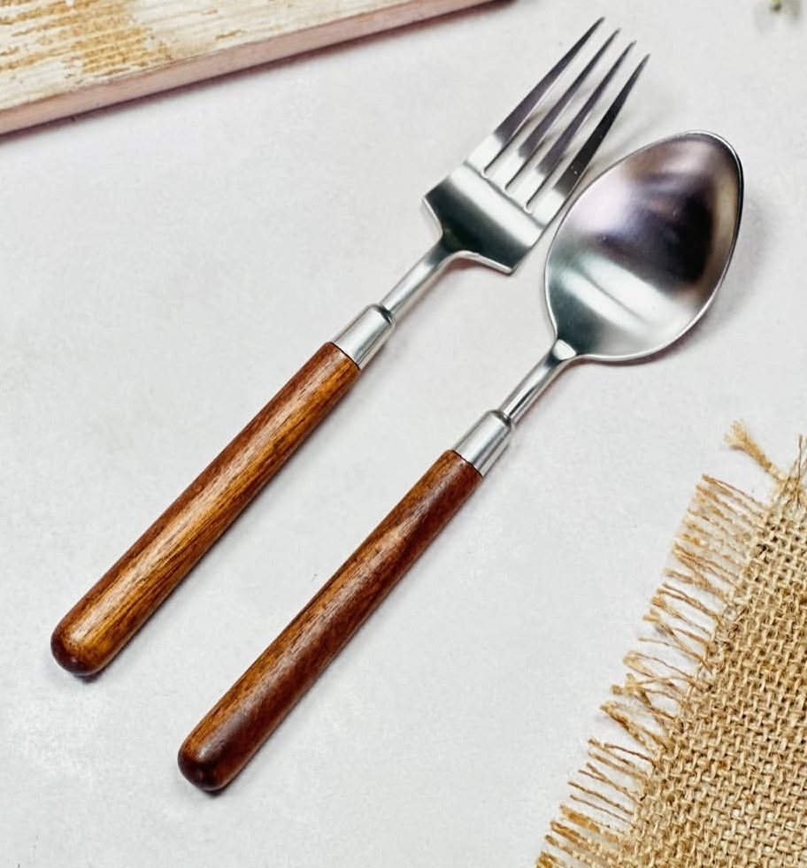 قاشق و چنگال استیل چوبی